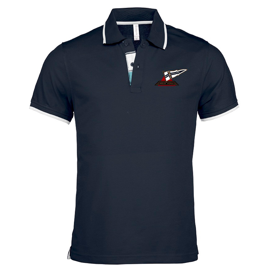 Polo Médivoile marine liseré blanc sur le col.